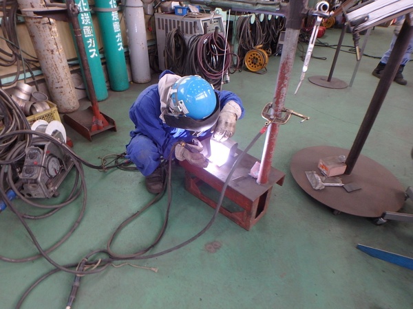 朝練! 溶接技術は一朝一夕には上達をしません。繰り返し試行錯誤をしながら覚えていくものです。 「なんで先輩はできるのに自分はできないんだろう」という疑問を持つことが大事です。 一昔前は「盗んで覚えろ」などと言われたものでしたが、分からないことは先輩スタッフが丁寧に指導してくれます。 今日も始業前の自主朝練で技術を磨いています!がんばれ!