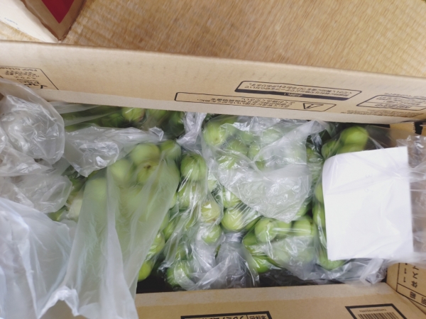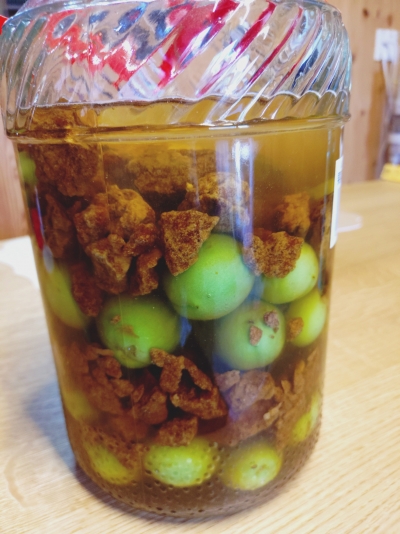 梅収穫 今年も田原組の梅の木にたくさんの梅がなりました。収穫してみたらなんと7㎏も獲れました。小分けにしてみんなに配りました。 持ち帰って梅酒を漬けてみました。いつもと違うテイストにしたかったので今回は黒糖を使用してみました。 梅がなるころに始まるのが梅雨ですね。新潟も昨日梅雨入りしました。しばらく不快な季節になりますが、 梅酒の出来上がりを楽しみに乗り切ってまいります。