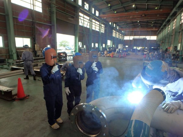 暑い時期にツナギを着て溶接ですから、体験の終わる頃には生徒さんはぐったりします。