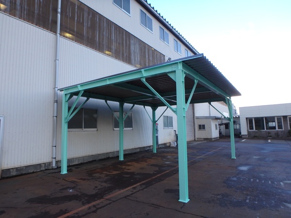 屋根更新 田原組敷地内で使っていた屋根が古くなってきたので、新しくすることにしました。 田原組で設計、製作、塗装、組立と一貫して行いました。 頑丈な鉄骨製の屋根が完成です。 雪が降る前に出来て良かったです!