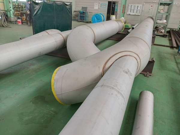 大口径配管製作据付工事 大口径ステンレス配管の製作と据付工事をさせていただきました。工場では傷をつけないように細心の注意を払って製作をします。現場では配管の引き込み部が狭く据付に苦労しましたが、安全作業で順調に工事が進んでおります。製作から据え付けまで、それが田原組の強みです。 #ステンレス #据付 #溶接 #現場工事 #配管