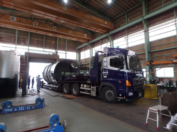 タンクの出荷です。タンク運搬専用トレーラーで運びます。