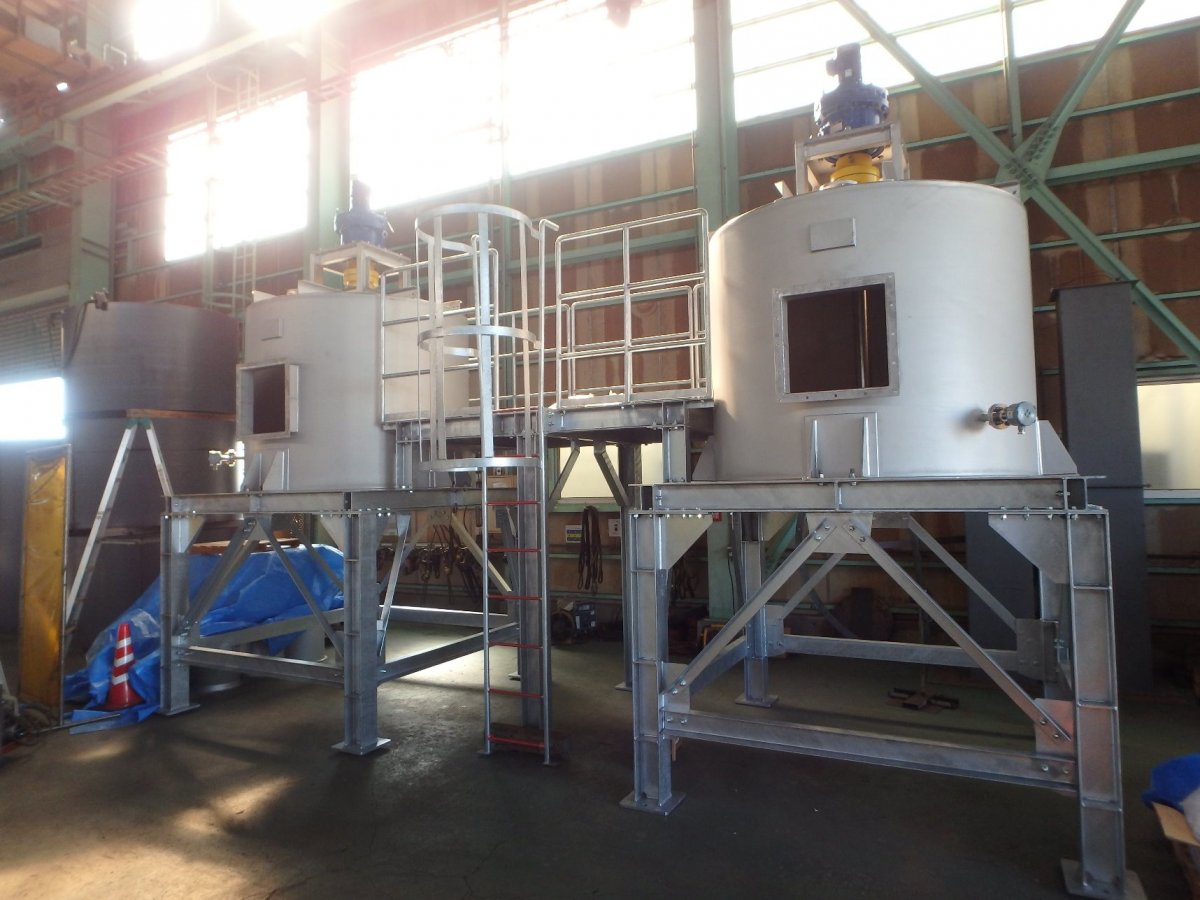タンクはステンレス、架台は亜鉛メッキ製の活性炭供給装置を製作させて頂きました。