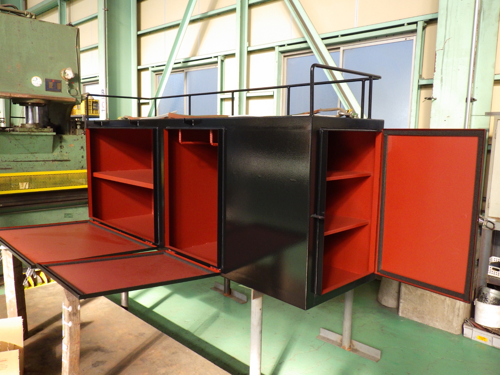 トラック収納ボックス トラックの運転席後部に取り付ける収納ボックスを製作させていただきました。ドライバーさんのリクエストを設計に盛り込み、製作と塗装をしました。新しく納車されたトラックの後部にピカピカの収納ボックス、とてもカッコいいですね! #溶接 #溶接構造物 #設計